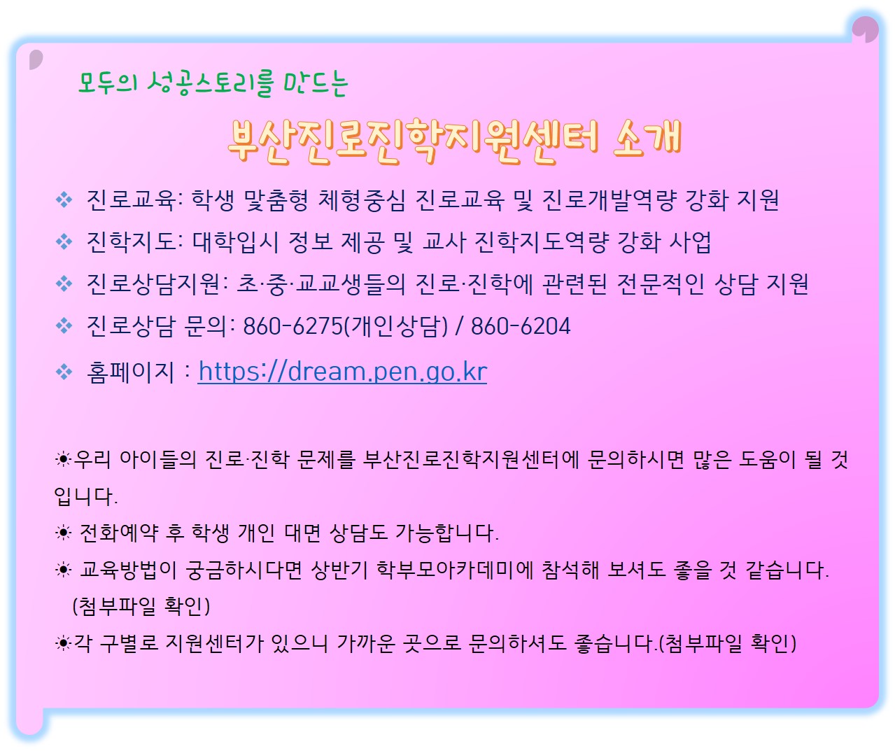 부산진학지원센터 2019 상반기 학부모 진로아카데미.hwp (131.5KB,251)구별진학지원센터.jpg (506.07KB,250) 목록 로그인 번호 제목 등록일 조회 15 [한겨레뉴스] 인권위 “아동양육시설-공동생활가정 종사자 급여 격차 없어야” 2019-04-18 1526 부산진학지원센터 2019-03-29 1175 13 2019년 보호종료아동 자립수당 2019-03-29 1619 12 2019년 보호종료아동 주거지원 통합서비스 2019-03-29 1286 11 [한국타이어나눔재단] 2019 상반기 타이어나눔 공모 2019-03-14 1228 10 2019년 2분기 사회복지사 보수교육 실시 안내(2019.3.15부터 신청 가능) 2019-03-14 1288 9 제97회 어린이날 유공 시장포상 대상자 추전 요청 2019-03-14 1125 8 2019년 보호종료아동 자립수당 지급 홍보물 2019-03-14 1043 7 2019년 보호종료아동 자립수당 신청 안내 2019-03-14 1009 6 아동생활시설 장애아동 자립지원 및 사후관리 강화 계획 2019-03-05 2080 5 아동학대신고의무자교육_ 사이버교육센터 활용 2019-03-05 5998 4 2019년 그룹홈 시설장 노무교육 2차(대전) 2019-02-27 1124 3 부산시 아동․청소년 그룹홈 간담회 2019-02-14 1206 2 주말 법캠프 및 성폭력예방, 아동학대예방 교육 안내 2019-02-14 1060 1 홈페이지 사용안내 및 인사글 2018-12-13 3251 1234567 제목 내용 제목+내용 댓글 이름 닉네임 아이디 검색