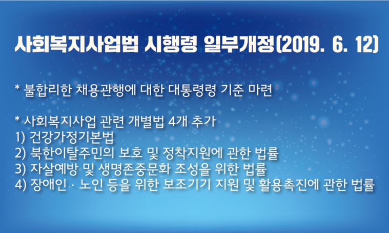 * 사회복지사업 관련 개별법 4개 추가